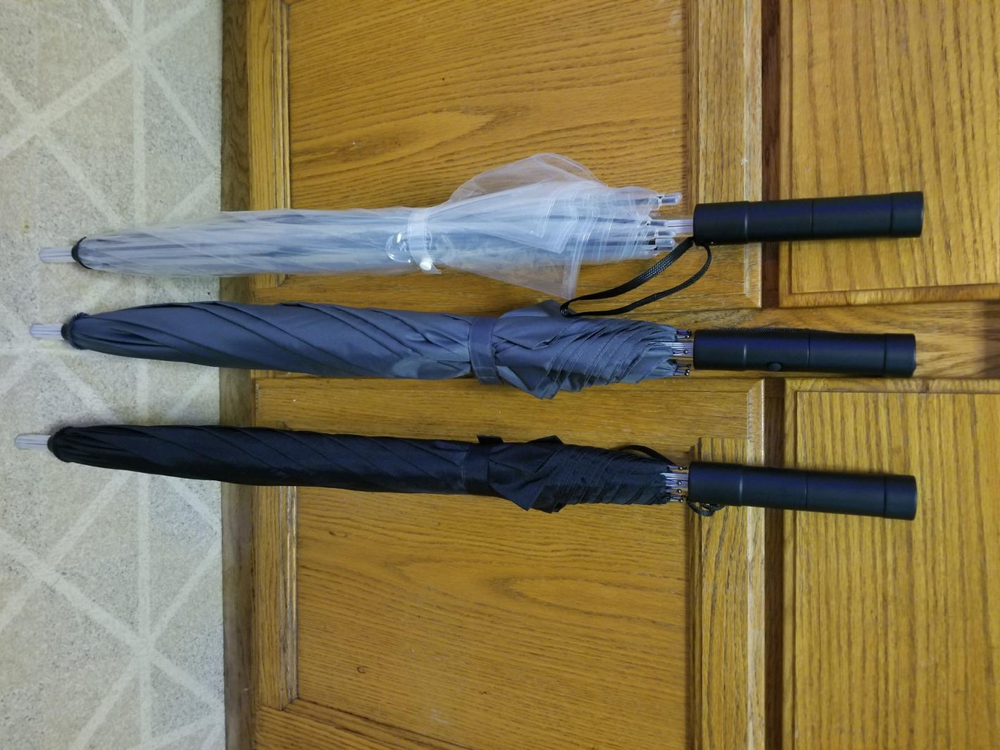 The umbrella is powered by 3 x AAA batteries (not included). They are easy to install in the handle compartment. We recommend using high-quality alkaline batteries for the brightest glow.